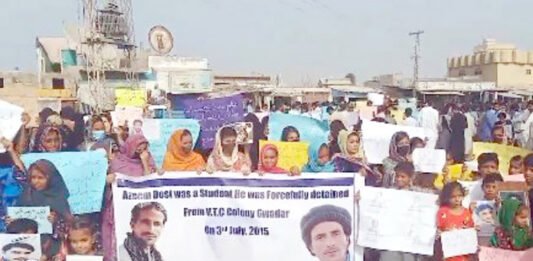 پاکستان کے وزیراعظم شہباز شریف کی بلوچستان کے ساحلی شہرگوادر آمد کے موقع پر لاپتہ عظیم دوست کے اہلخانہ سمیت دیگر لواحقین کی جانب سے احتجاجی مظاہرہ کیا گیا اور ریلی نکالی گئی۔ احتجاجی ریلی کے شرکا کی جانب سے جبری گمشدگیوں کے سلسلے کو بند کرنے کا اور عظیم دوست سمیت تمام جبری لاپتہ … وزیر اعظم پاکستان کا دورہ گوادر، لاپتہ افراد کی بازیابی کیلئے احتجاجی ریلی پڑھنا جاری رکھیں