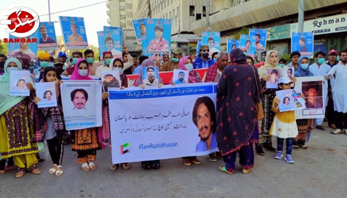 انہوں نے کہا راشد حسین بھی ان ہی حالات سے متاثر ہوکر دبئی منتقل ہونے پر مجبور ہوا جہاں محنت مزدوری کرنے لگا لیکن بیرون ملک بھی وہ محفوظ نہیں رہے۔ 26 دسمبر 2018 کو اپنے دیگر کزنوں کے ساتھ صبح سویرے اپنے کام کے سلسلے میں جارہے تھے کہ راستے میں متحدہ عرب امارات کے خفیہ ادارے کے اہلکاروں نے انکی گاڑی روک لی اور راشد کو گاڑی سے اتار کر لے گئے۔ اسی دن سے راشد کے خاندان سمیت بلوچ ایکٹویسٹ، انسانی حقوق کے تنظیموں کے رہنماوں نے مسلسل کوشش کی کہ راشد حسین کا کوئی سراغ مل جائے کہ وہ کہاں ہے، کچھ معلوم نہیں ہوا، آخر ایک ہفتے بعد راشد کو امارات کے خفیہ ادرے والے بھاری فورسز کے ساتھ اس کے کزن کے گھر لے آئے، راشد کی حالت سے ایسا لگا کہ وہ تشدد کا شکار ہوا تھا، وہ گھر کی تلاشی اور راشد کا فون وغیرہ کا پوچھ گچھ کرنے لگے اور متاثرہ خاندان کے لوگوں کو دھونس دھمکی دے کر یہ کہتے ہوئے چلے گئے کہ اب تم لوگوں کا بھی خیر نہیں ہوگا۔