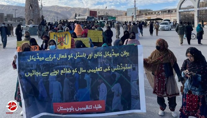 بلوچستان کے تعلیمی اداروں کی ملٹرائزیشن ، بلوچ طالبعلموں پر ریاستی کریک ڈائون اور بولان میڈیکل کالج کی بندش کے خلاف بلوچستان کے طلبا تنظیموں نے دارالحکومت کوئٹہ میں احتجاجی ریلی نکالی اور مظاہرہ کیا۔