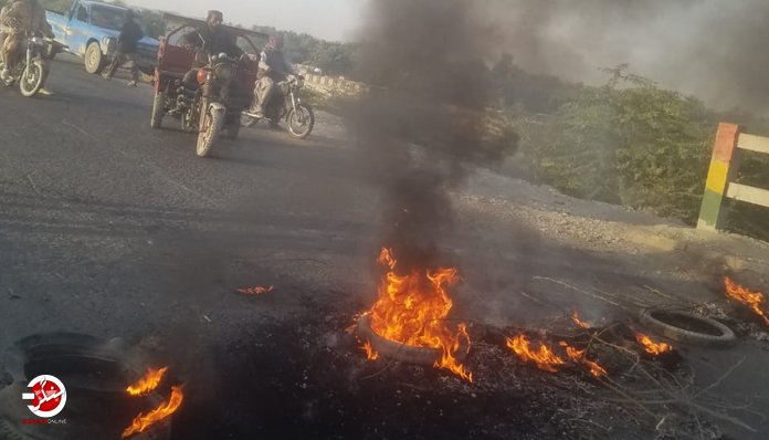 شہر بھر میں کاروباری مراکز بند ہیں اور مظاہرین نے راستوں پر ٹائر جلا کر انہیں ہر قسم کی ٹریفک کیلئے بند کردیا ہے۔