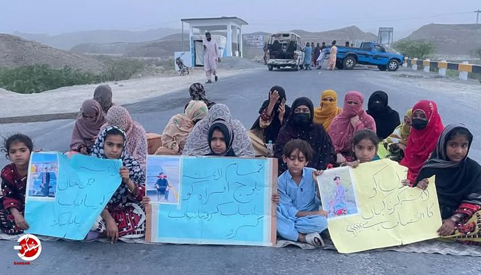 بلوچستان کے ضلع کیچ کے مرکزی شہر تربت سے پاکستانی فورسز کے ہاتھوں جبری گمشدگی کے شکار نوجوان دین جان سمیت دیگر لاپتہ افراد کی فیملی نے جدگال ڈن (ڈی بلوچ پوائنٹ) پر ایم 8 شاہراہ بلاک کرکے دھرنا دے دیاہے ۔