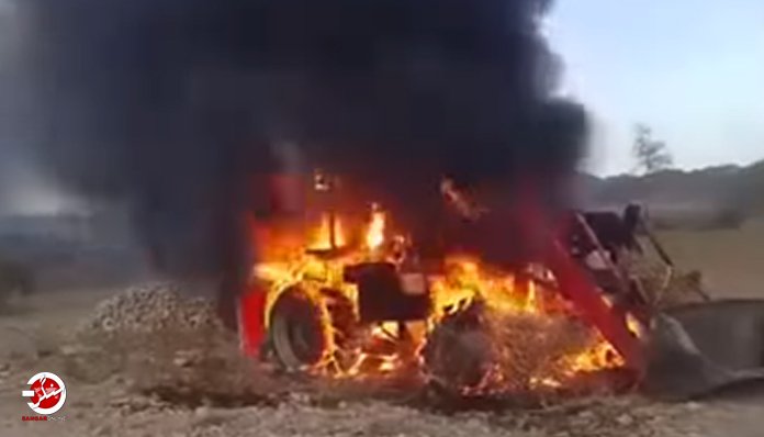 مقامی ذرائع کے مطابق، مسلح افراد موقع پر پہنچے اور مزدوروں کو کام بند کرنے کا حکم دیا اور ٹریکٹر کو نذرِ آتش کر دیا۔