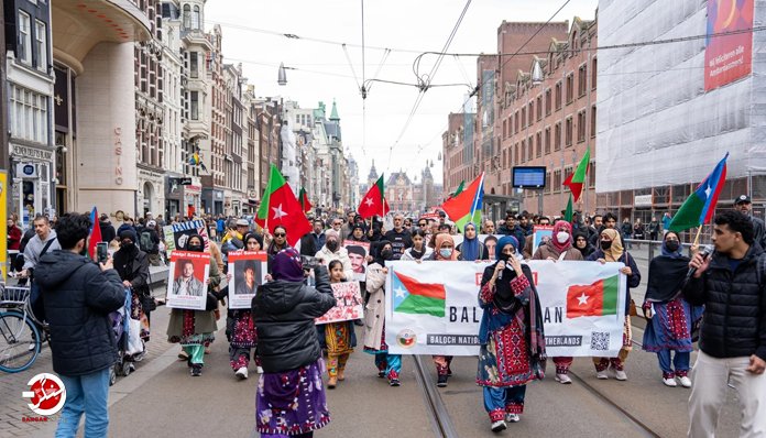 بلوچ نیشنل موومنٹ ( بی این ایم ) کی جانب سے نیدرلینڈز کے شہر ایمسٹرڈیم میں پاکستانی ریاست کی طرف سے بلوچ یکجتی کمیٹی کے رہنما ڈاکٹر ماہ رنگ بلوچ ، بیبگر بلوچ ، اور دیگر کی گرفتاری اور تشدد کے خلاف احتجاجی مظاہرہ کیا گیا۔