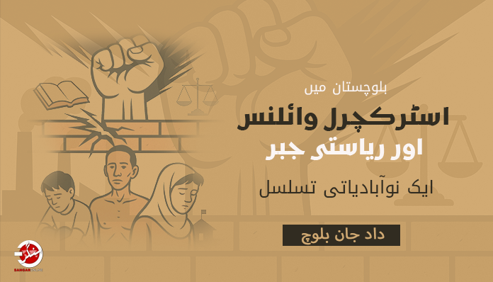 پاکستان نے جب سے بلوچستان پر اپنی ریاستی بالادستی قائم کی، اس دن سے یہاں استعماری طرزِ حکمرانی، وسائل کی بے دریغ لوٹ مار، جبری گمشدگیوں، اور عسکری جارحیت کا نہ ختم ہونے والا سلسلہ جاری ہے۔ بظاہر یہ سب انسانی حقوق کی پامالی یا عسکری تسلط کے مظاہر لگتے ہیں، مگر اگر گہرائی میں دیکھا جائے تو یہ دراصل "اسٹرکچرل وائلنس” یعنی ساختیاتی تشدد کی ایسی پیچیدہ اور منظم شکل ہے جو ریاستی اداروں، قانونی نظام، تعلیمی و معاشی پالیسیوں اور سماجی ڈھانچوں کے ذریعے بلوچ قوم پر مسلط کی گئی ہے۔