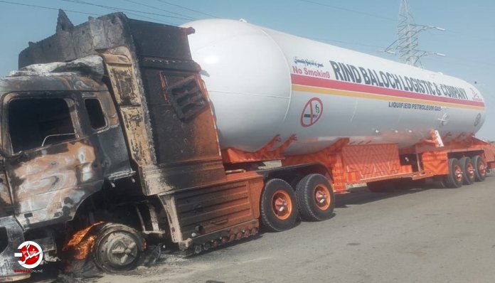 بلوچستان کے ضلع کیچ کے مرکزی شہر تربت سے چالیس کلومیٹر مغرب میں ناصر آباد میں زبیدہ جلال روڈ پر نامعلوم موٹر سائیکل سواروں نے ایک ایل پی جی گیس لے جانے والی بائوزر گاڑی کو روک کر آگ لگا دی۔