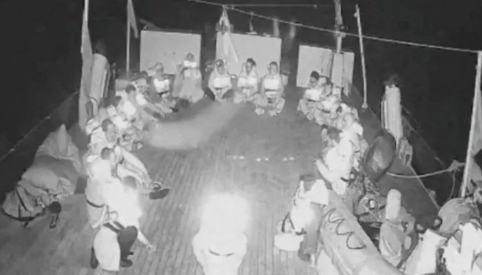 وزارتِ خارجہ کی جانب سے فلوٹیلا کو روکے جانے کی فوٹیج شیئر کی گئی ہے جس میں تھنبرگ کو ایک کشتی کے عرشے پر بیٹھے ہوئے دیکھا جا سکتا ہے۔