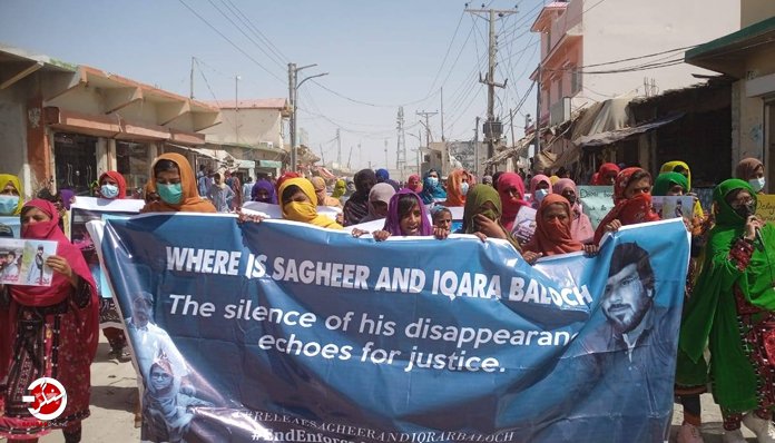 بلوچستان کے علاقے آواران میں پاکستانی فورسز کے ہاتھوں جبری لاپتہ صغیر بلوچ اور اقرار بلوچ کی بازیابی کے لئے گذشتہ روز لواحقین کی جانب سے ریلی نکالی گئی۔