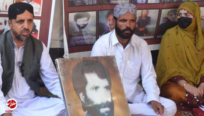 پاکستانی فورسز کے ہاتھوں گذشتہ 24 سالوں سے جبری گمشدگی کے شکار علی اصغربنگلزئی کے بیٹے غلام فاروق نے ہفتہ کو وائس فار بلوچ مسنگ پرسنز کے چیئرمین نصر اللہ بلوچ، حوران بلوچ سمیت دیگر کے ہمراہ عدالت روڈ پر قائم وائس فار بلوچ مسنگ پرسنز کے احتجاجی کیمپ میں پریس کانفرنس کرتے ہوئے کہاکہ میرے والد علی اصغر بنگلزئی ایک بلوچ سیاسی کارکن تھے جنہیں پہلی مرتبہ جون 2000ء کو اداروں کے اہلکاروں نے شاہوانی روڈ کوئٹہ سے لاپتہ کردیا اور 14 دن کے بعد رہا کردیا۔
