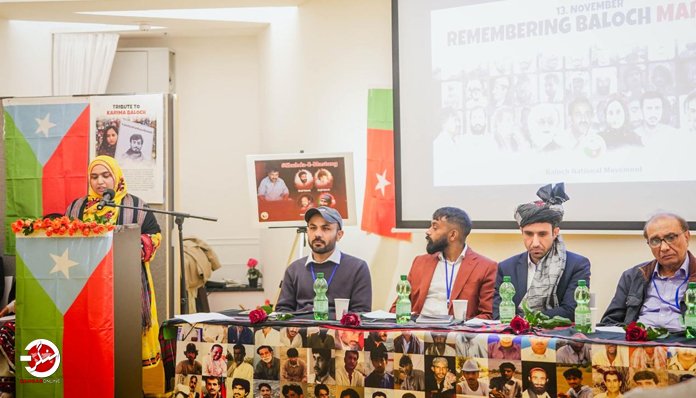 بلوچ نیشنل موومنٹ (بی این ایم ) جرمنی چیپٹر کی نائب صدر صفیہ بلوچ نے 13 نومبر، بلوچ شہداء کے دن کے موقع پر برلن، جرمنی میں منعقدہ بی ای ین ایم کے سیمینار سے خطاب کرتے ہوئے شہداء کی قربانیوں کو خراج تحسین پیش کرتے ہوئے کہا کہ ان کا لہو آج بھی ہماری رگوں میں رواں ہے۔