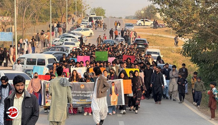 پاکستان کے دارلحکومت اسلام آباد میں سیکورٹی فورسز ہاتھوں طالب علم سعید بلوچ کی جبری گمشدگی کے خلاف بلوچ اسٹوڈنٹس کونسل کی جانب سے قائداعظم یونیورسٹی میں جاری دھرنے کو گذشتہ روز نودن مکمل ہونے پر طلبا بلوچ طلبا نے ایک امن واک انعقاد کیا۔