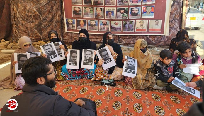 بلوچستان میں جبری گمشدگیوں کے خلاف وائس فار بلوچ مسنگ پرسنز کے زیرِ اہتمام قائم احتجاجی کیمپ کوئٹہ پریس کلب کے سامنے 6038ویں روز بھی جاری رہا۔