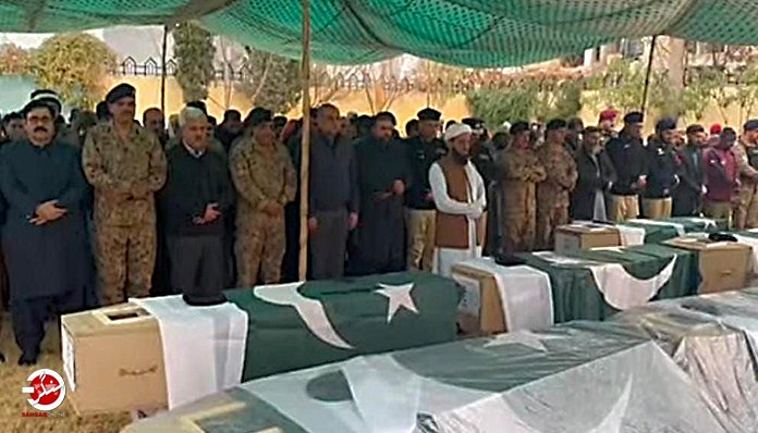 بلوچستان کے مرکزی شہر کوئٹہ میں حملوں میں ہلاک ہونے والے اہلکاروں کی نمازِ جنازہ ادا کی گئی، جس میں پاکستان کے وفاقی وزیر داخلہ محسن نقوی اور کٹھ پتلی وزیر اعلیٰ سرفراز بگٹی سمیت متعدد اعلیٰ حکومتی شخصیات نے شرکت کی۔