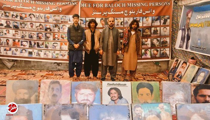 بلوچستان میں جبری گمشدگیوں کے خلاف وائس فار بلوچ مسنگ پرسنز (VBMP) کے زیر اہتمام قائم احتجاجی کیمپ تنظیم کے چیرمین نصراللہ بلوچ کے قیادت میں کوئٹہ پریس کلب کے سامنے 6078ویں روز میں داخل ہوگیا۔